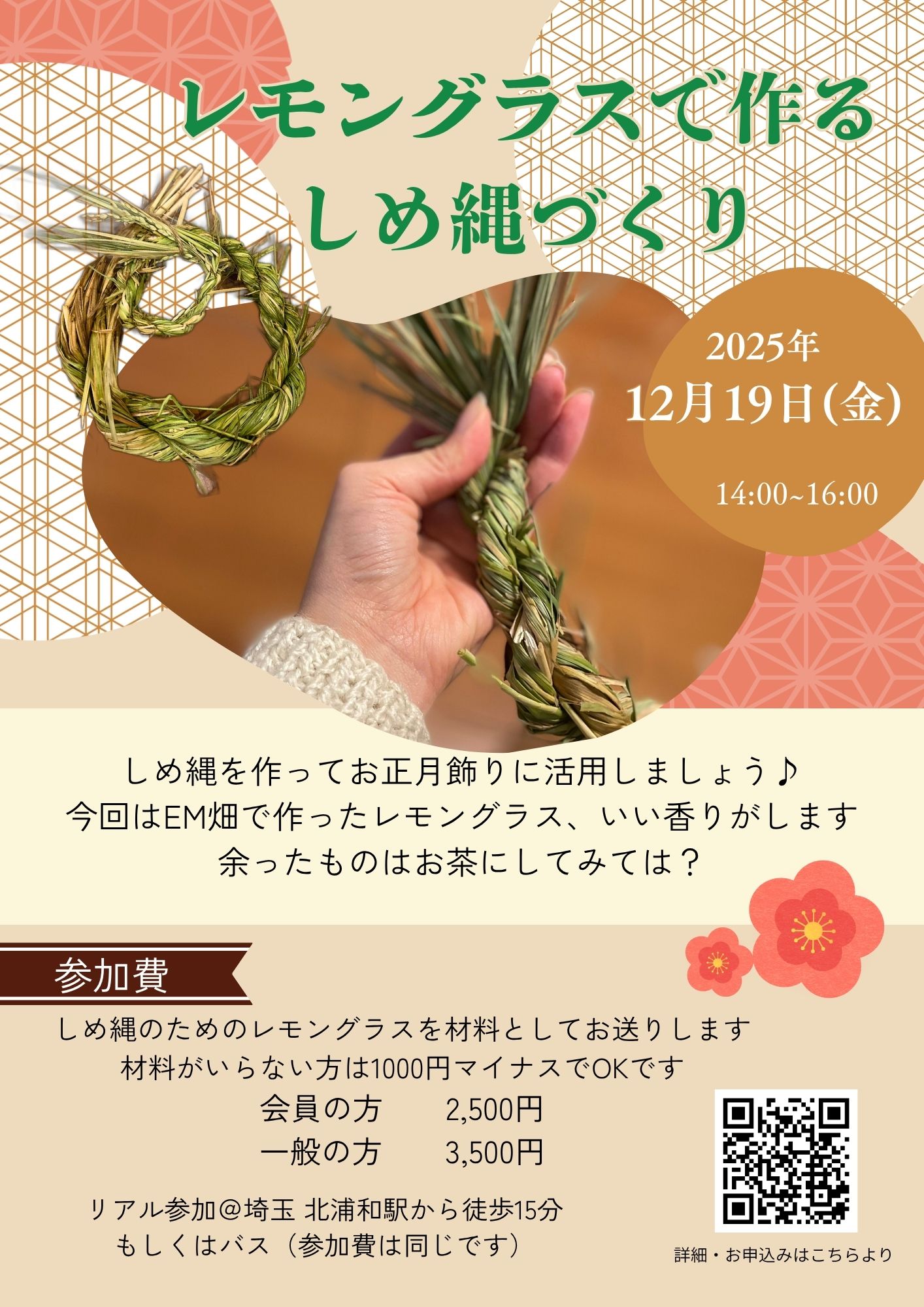 このイベントは終了しました【リアル&オンライン】レモングラスで作るしめ縄づくり埼玉県埼玉県内 浦和駅より徒歩15分/オンライン