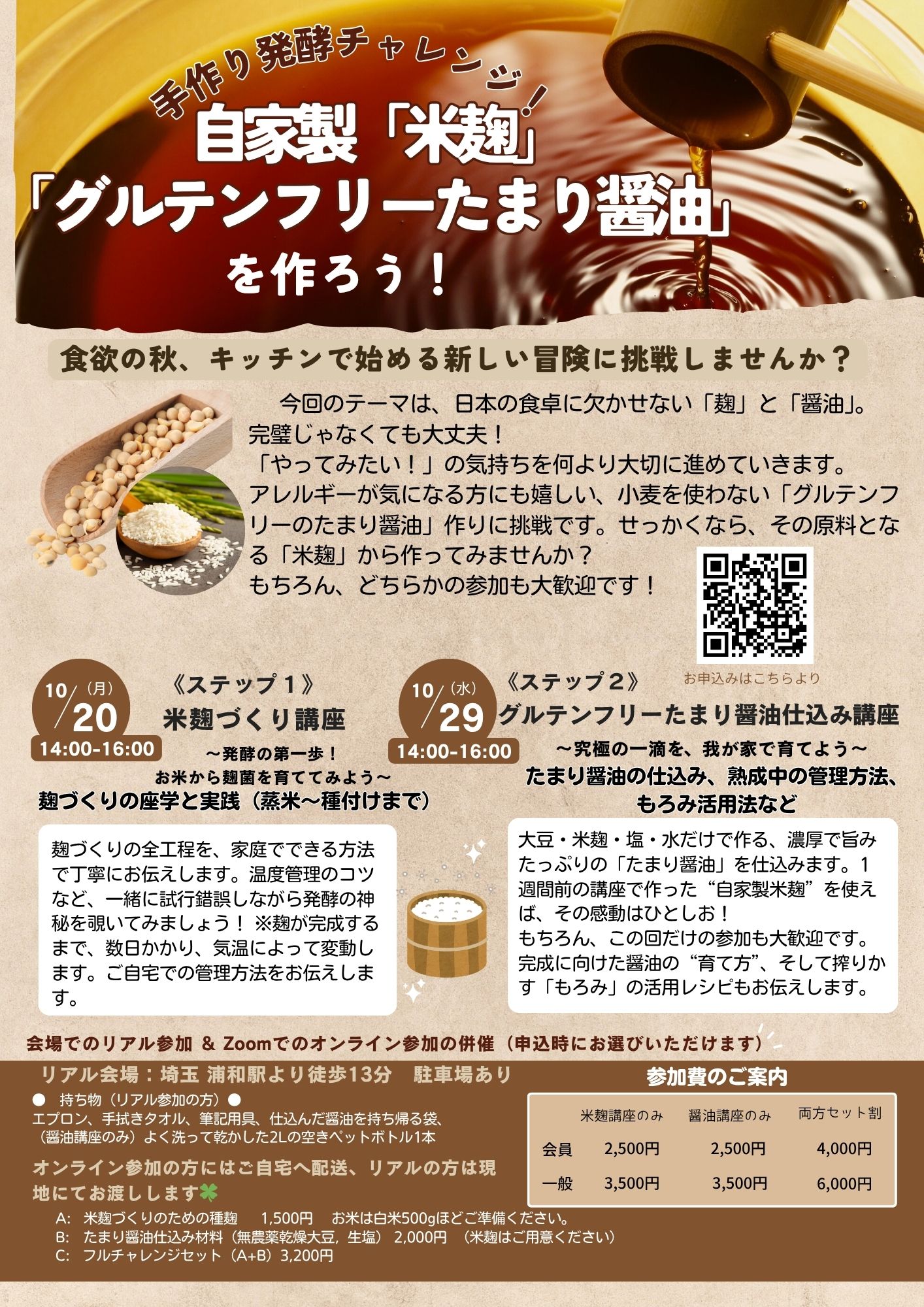 10/29の「グルテンフリーたまり醤油仕込み講座」とダブル受講でよりお得に受けられます。