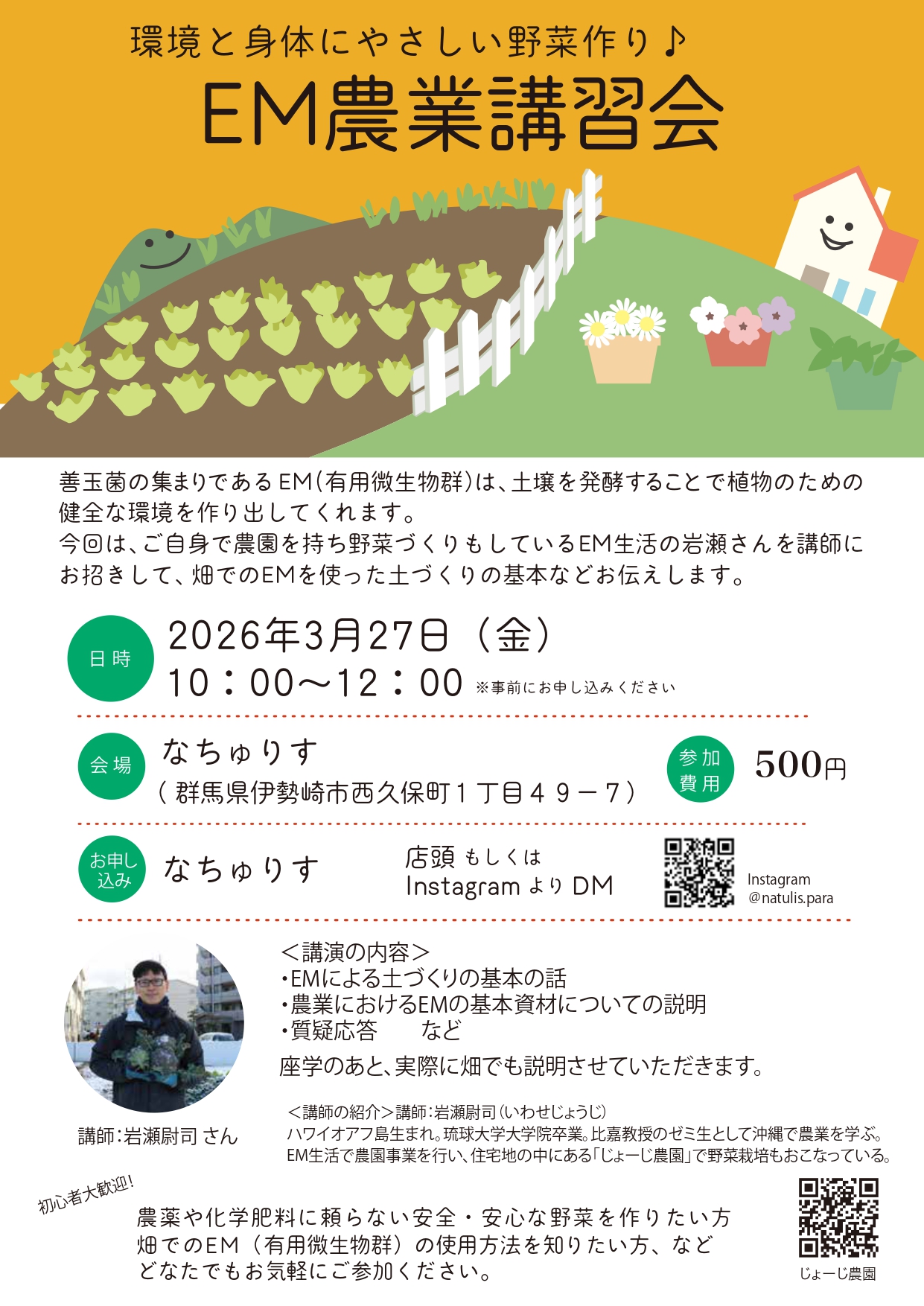 【群馬県】環境と身体にやさしい野菜作り♪EM農業講習会