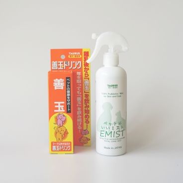 トーラス株式会社では、多くのペットにEMを届けたい思いから犬、猫、小鳥、小動物向けのサプリメントから、グルーミングスプレーや消臭剤などを販売しています。