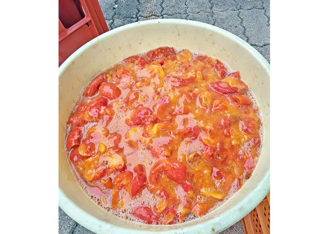 40リットルの樽で柿酢を仕込み、完成したら近所の人にもおすそ分け。