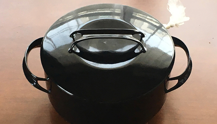 肉を常温に戻している間に、蓋つきの鍋に2Lの湯を沸かしておきます。