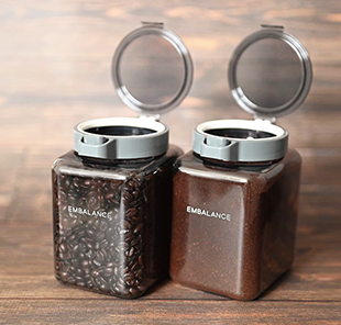 ワンタッチでフタが開くタイプの保存容器。エンバランス加工とUVカットで食品を守ります。
