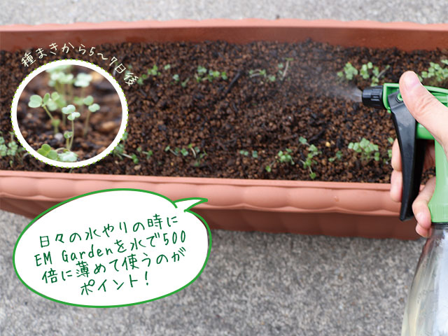 ④発芽までは、なるべく土の表面が乾かないように、優しく水をかけましょう。