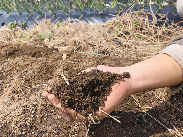 土地が持っている作物の生産力を考える上で、土質、微生物やミミズなどの土壌生物の多様性、肥料成分などは大切な要素です。病原菌を撃退するために消毒剤を使うと、土を肥沃にする良い微生物やミミズなどの小動物まで死んでしまい、植物が育ちにくい硬い土になっていきます。微生物を活かして土の力を上げてこそ、おいしい野菜の栽培に繋がります。