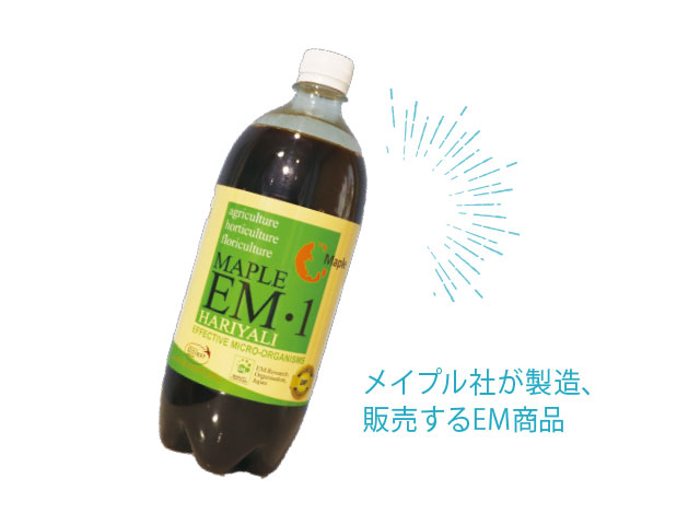 ※EM(通称:EM菌*)はEffective(有用な)Microorganisms(微生物たち)の英文の頭文字に由来しています。その名の通り、特殊なひとつの菌ではなく、乳酸菌や酵母、光合成細菌など、どこにでもいる微生物で、人間にとっていい働きをしてくれる微生物の集まりです。
