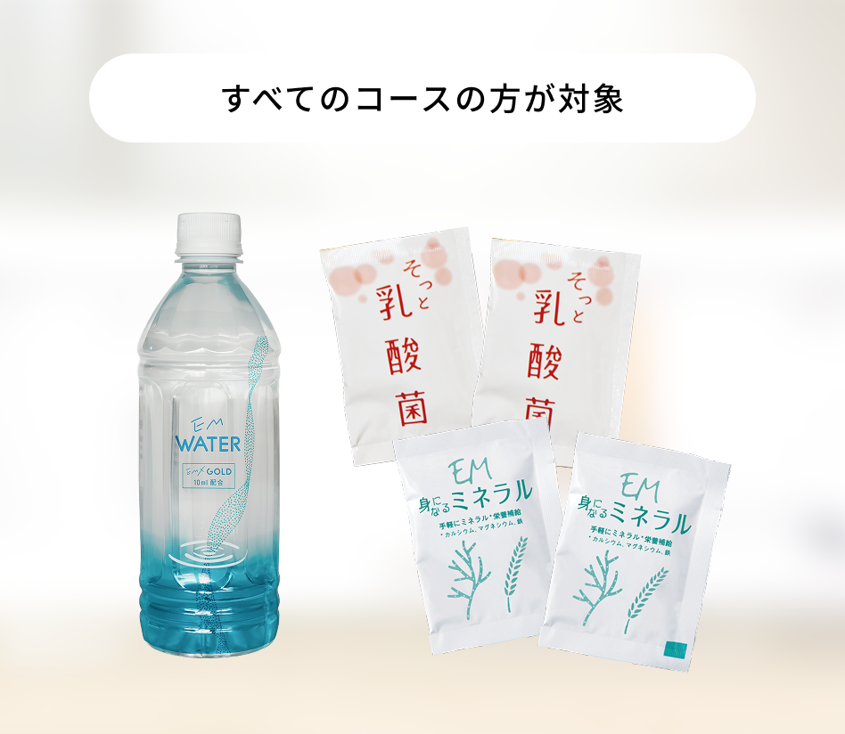 ※3本、6本コースの方がお届け本数を限定的に2本以下に減らした場合、EM商品プレゼントは付きませんのでご了承ください。
